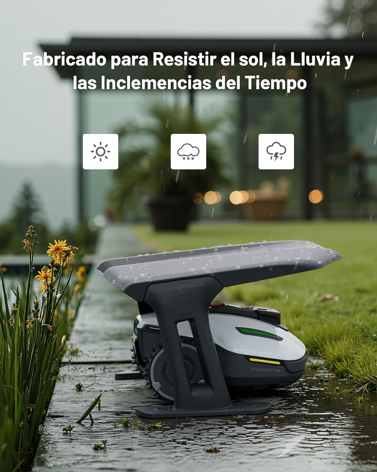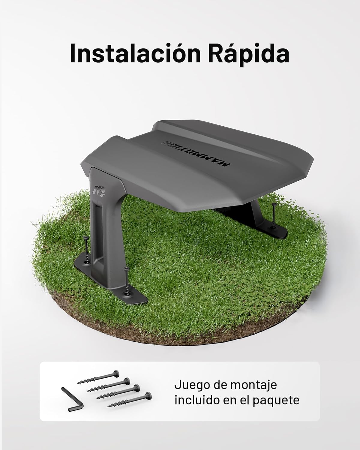 Garaje estándar MAMMOTION – Protege tu robot cortacésped de la lluvia y el sol. Compatible con las series LUBA AWD, YUKA, YUKA Mini y LUBA Mini AWD. Diseño resistente y elegante para prolongar la vida útil de tu equipo.