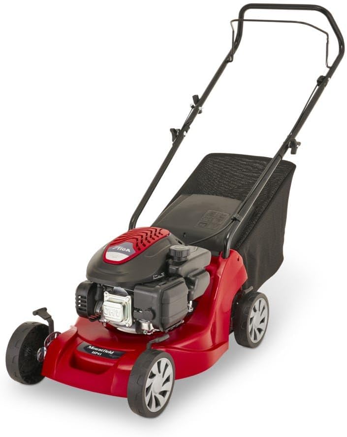 - Contenido: 1 cortacésped Mountfield HP41, 1 depósito de combustible de 0,75 L, 1 depósito de aceite de motor de 0,5 L, 1 colector de césped de 40 L