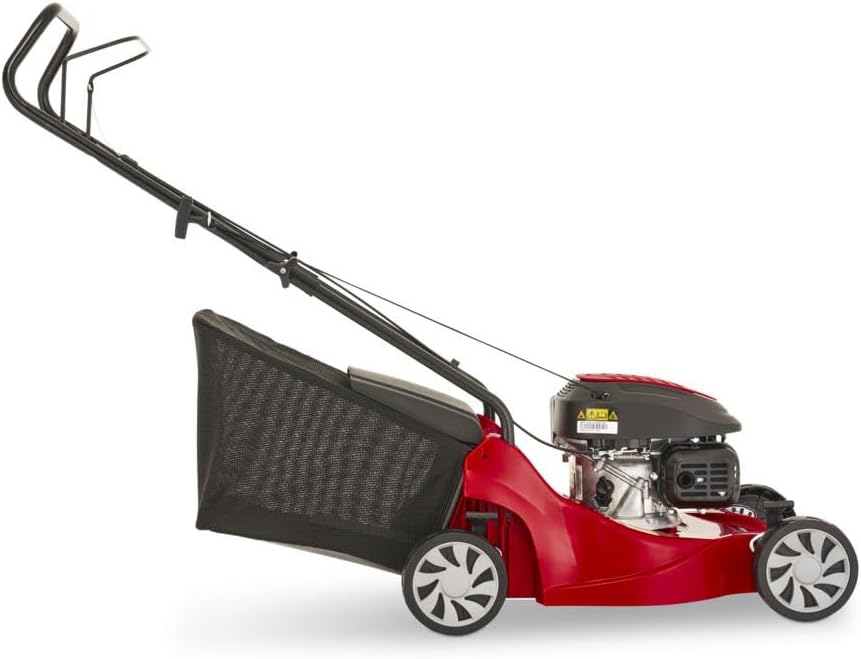 Cortacésped manual fácil de usar con un ancho de corte de 39 cm, chasis ligero para maniobrabilidad, ideal para jardines pequeños o medianos, colector de césped de 40 L. Fácil de usar: propulsado a mano, altura de corte ajustable (5 posiciones de 25-70 mm), ruedas ranuradas para tracción, óxido Stigun motor de gasolina ST120 con capacidad de 123 cúbicos, método de corte de colección para facilitar la eliminación de césped, peso ligero del paquete de 21,1 kg, máx. Área de trabajo de 250 m, chasis de polipropileno ligero y resistente, colector de césped de 40 litros fácil de quitar y vaciar con el mango superior, asas plegables para un almacenamiento compacto y fácil transporte. Contenido: 1 cortacésped Mountfield HP41 y 1 combustible de 0,75 L. ank, 1x 0Depósito de aceite de motor .5L, 1 colector de hierba de 40L
