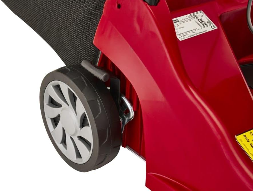 - Fácil de usar: propulsado a mano, altura de corte ajustable (5 posiciones de 25 a 70 mm), ruedas ranuradas para tracción, chasis inoxidable